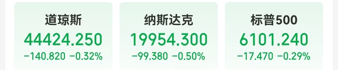 当地时间1月24日,美股三大指数集体收跌,纳指跌0.5%,标普500指数跌0.29%,道指跌0.32%。